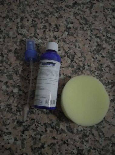 It works very effectively, creating a film that maintains the brightness, and the difference is quite noticeable. It's important to apply it to a sponge and then to the material to be cleaned.