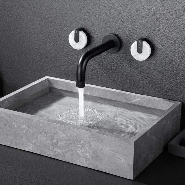 Introducing the epitome of modern elegance and functionality – our wall-mounted, dual handle bathroom faucet. Designed for the contemporary home, this faucet boasts a chic matte black finish that adds a touch of sophistication to any bathroom space. Ideal for daily use, its dual-handle control allows for precise temperature adjustments, ensuring a perfect bath experience every time.
