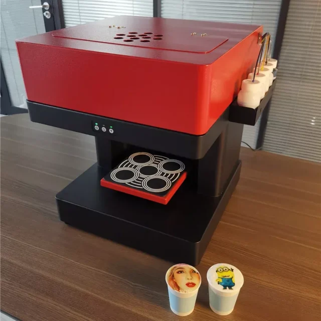 Our printer stands out for its versatility, speed, and quality. Whether you’re running a café, bakery, or just love to experiment at home, this printer is your ideal companion. It’s best used when you want to add a personal touch to your edible creations, be it a photo on a birthday cake or a lovely pattern on a latte. With its easy-to-use software, you can switch between designs effortlessly, making every creation unique and special. The automatic lift cup function and the continuous ink supply system make it not only user-friendly but also cost-effective.