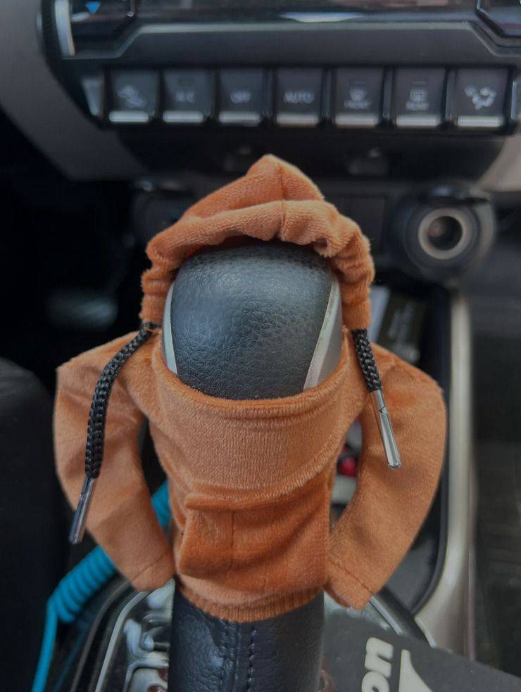 Well, these are adorable. I didn't know I needed my gear shift knob to look this cool, but I'm glad I have them. I even made them cooler by putting the sleeves in the front pocket of the hoodie, so now it's a whole vibe. They are a cute car accessory, and the colors are as pictured.