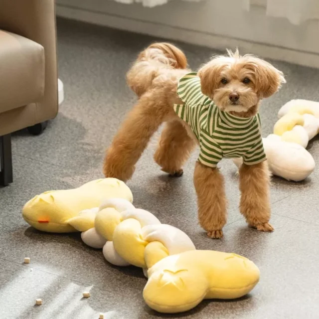 Crafted from soft, durable fleece, this bone-shaped toy is a combination of fun and functionality. It features hidden pockets where you can place treats, motivating your dog to use their sense of smell to find them. This toy provides an excellent way to engage your dog’s brain while satisfying their natural instincts to search for food. Whether you want to slow down their eating habits or keep them occupied for a few hours, this toy is the perfect solution.