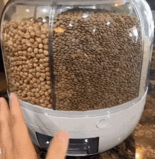 A smooth-rotating, cupboard-friendly grain dispenser, ideal for storing various items like rice, beans, and lentils.
