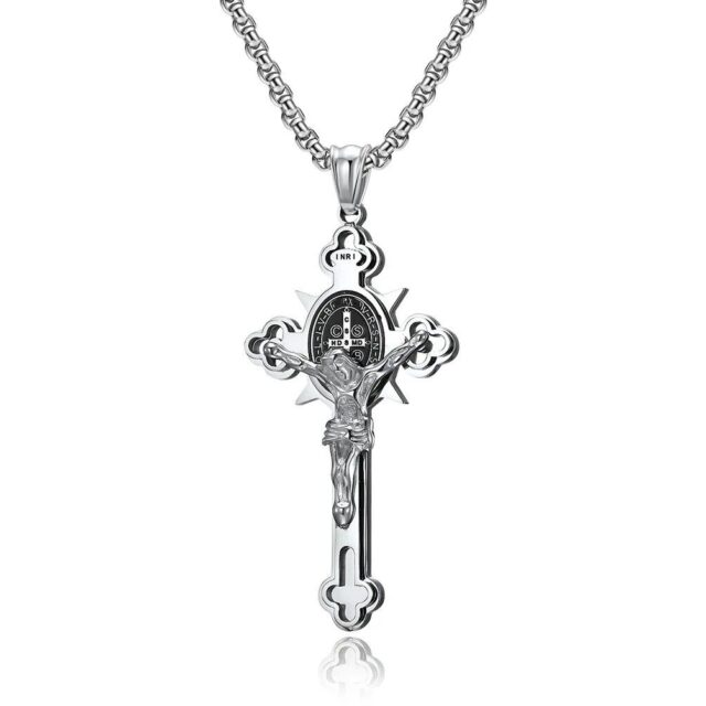 Discover the Power of Faith: Carry with you a symbol of divine protection and spiritual strength with our Saint Benedict Exorcism Cross Necklace. Revered for centuries, the medal embedded in this necklace is not just an ornament but a testament to the profound belief in the protective power of Christ.