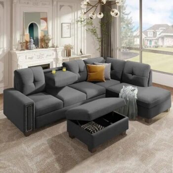 L-Shaped Sofa with Reversible Recliner and Ottoman