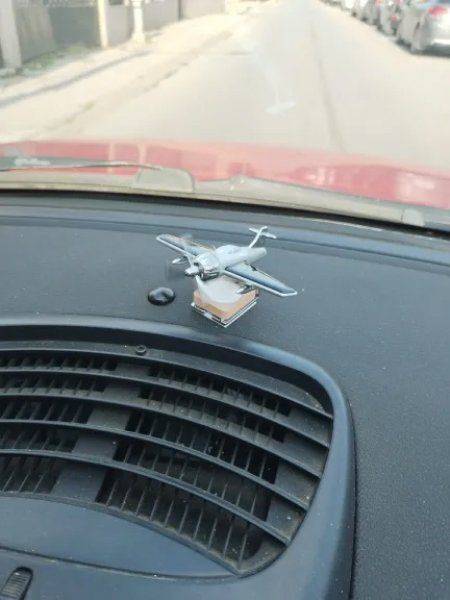 I'm so pleased with this airplane air freshener. It was a gift from my daughter, and it's quickly become a favorite in my car. The propeller's movement in the sun is fascinating, and the ability to use various scents makes it even better