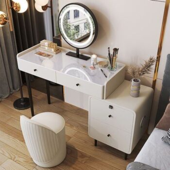 Modern Minimalist Vanity Table with Mirror & Stool