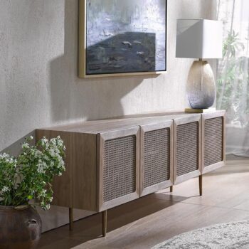 Scandinavian Modern Rattan TV Cabinet – Solid Wood, Multifunctional Living Room Furniture