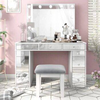 Chic Modern Makeup Vanity Table with LED Mirror and Chair Set