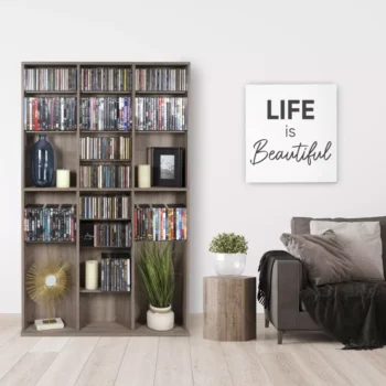 Weathered Oak Woodgrain Media Storage Bookcase